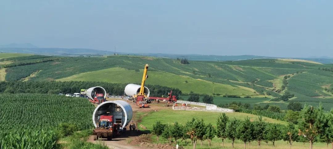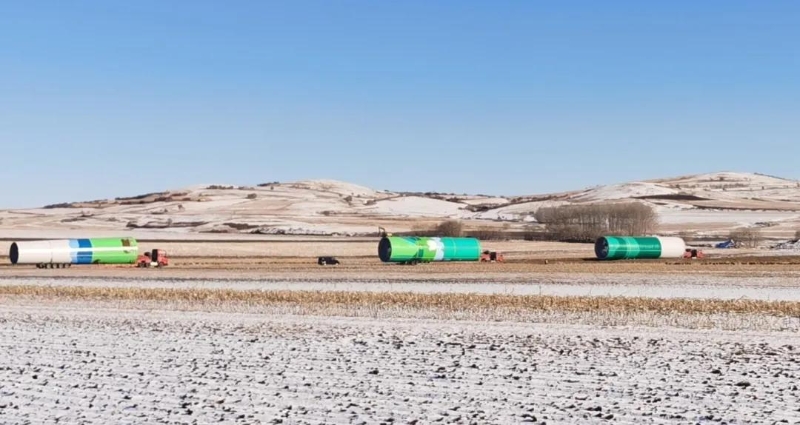 截至目前项目共需转运59套塔筒已完成45套。项目投运后年发电量可达26.5亿千瓦时,相当于节约标准煤109.3万吨,减排二氧化碳284万吨、二氧化硫407.7吨、氮氧化物1165.2吨、烟尘121.4吨,将显著提升区域清洁能源消纳能力,为"双碳"目标贡献硬核力量。