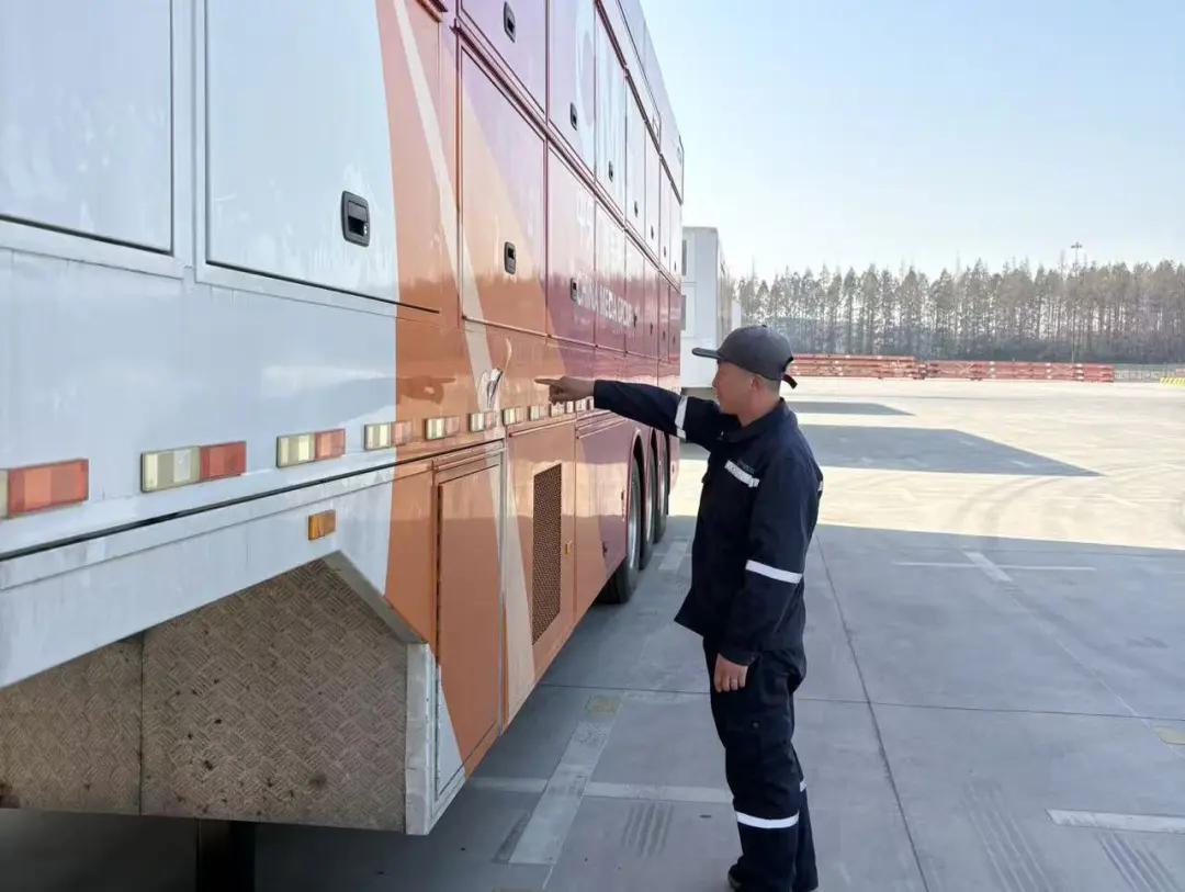 接到委托后,理货检验协同团队立即响应,迅速抽调骨干人员组建专项小组,并针对转播车的特殊性制定了详尽的作业方案。 理货环节中,工作人员逐台核验车辆型号、车架号及随车配件等关键信息,确保所有数据精准无误且一致;同时,细致核对交接单证,实现全程可追溯性。