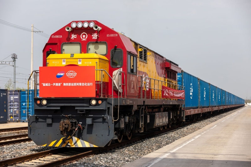 以“盐城北-上海港”为例,2023年10月,中远海运物流供应链与盐城市交投集团共同出资成立盐城中远海运物流供应链平台公司,并充分发挥中远海运集团内部资源与协同优势,与中远海运集运共同首开“盐城北—上海港”海铁联运固定班列并升级为“天天班”。该班列按照“五定”方式科学设计,由中远海运100%主导运营,在盐城北铁路货运站同步设置外贸集装箱提还箱点,积极推广CCA“一单制”联运提单,推出面向客户的一体化全链路产品与服务,为盐城及长三角制造、商贸等企业提供高效组合的供应链优化方案,占盐城海铁联运外贸集装箱发送量的85%。截至2025年9月,“盐城北-上海港”线路已累计发运2131台“盐城造”汽车,待发订单超万台,助力“盐城造”汽车远销17个国家和地区;累计运输超2597个高柜光伏产品,货损率控制在0.1%以内,为绿色产业发展保驾护航。