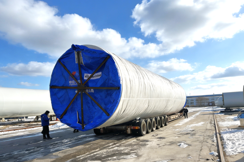 远景赤峰P1风电项目,是客户在内蒙古赤峰市翁牛特旗投资建设的大型风电场,属于赤峰市能源物联网零碳氢氨一体化示范项目的核心环节。项目投资建设665MW大型风电场,安装133台,单机容量6.25MW的风力发电机组。项目建成后,80%的发电量将直供元宝山区氢氨生产工厂,其余电量并入电网成为全球首个百万吨级零碳氢氨项目的,绿色能源基石助力赤峰市构建千亿级氢能经济生态圈。 风电塔筒作为风力发电机组的支撑结构,具有直径大、长度长、重量重的特点,属于超限大件设备。运输全程从工厂生产基地到内蒙古赤峰翁牛特旗项目现场,跨越距离长,途经多省市,其运输过程涉及复杂的路线规划、路政协调、安全管控与时效保障,运输难度极高。