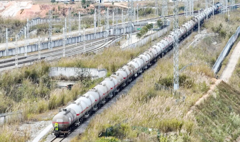 此次首油成功入库,是中远海运物流供应链与中国船燃公司高效协同、紧密携手,共促区域发展的积极实践。由中国船燃调配的首油专列,从粤西湛江港始发,一路跨越广东、广西、贵州、云南四省,顺利抵达云南临沧,为临沧油库的正式投运拉开序幕。