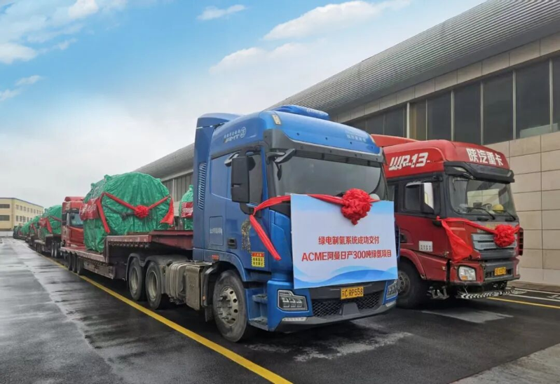 此次出运的16套绿电智能制氢系统,是客户专为“ACME阿曼日产300吨绿氨项目”量身打造的核心装备。该项目是中东地区绿色氢氨一体化发展的标杆工程,在全球范围也具有示范意义。 针对设备超高、超重、多组件的运输挑战,华东区域公司所属江阴中远海运物流提前对接客户生产计划,多次实地勘测设备尺寸,深入研判吊装与运输难点,量身定制了全流程地面物流方案。